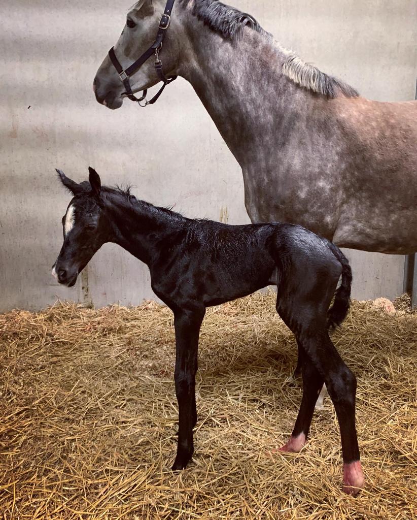Vandaag is onze ster, voorlopig-keur merrie Lady Daula (v. Negro x Charmeur x Jester) bevallen van een prachtig merrieveulen van onze eigen hengst Monte JT (v. Totilas x Metall x Krack C). Haar naam is ‘Rebel Daula’!